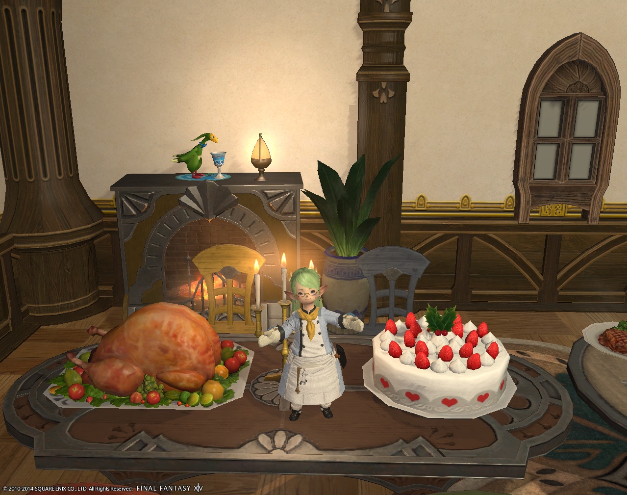 写真はミズちゃんとローストチキン&ケーキです